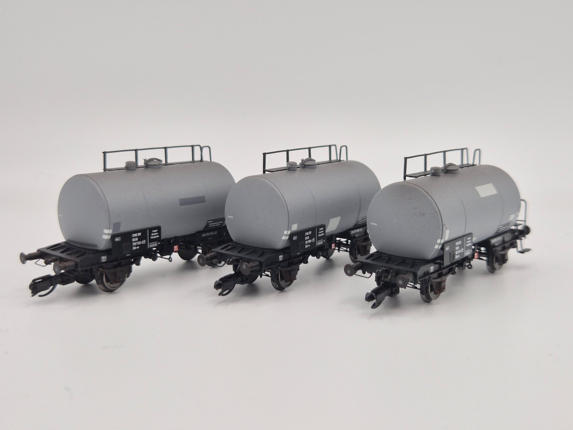 120118-L - 3er Set Kesselwagen 'Deutz' Grau, Flicken, DR Ep.IV gealtert