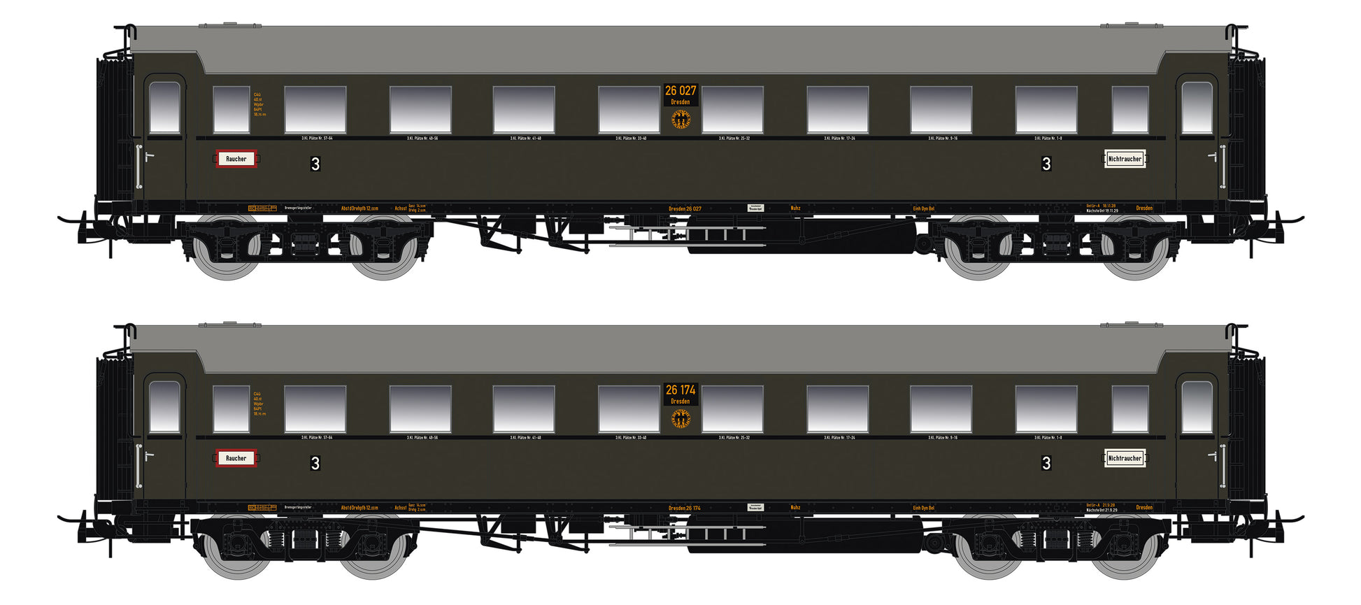 87179 H0 2er Set Personenwagen C4Ü Sa 07 mit Beleuchtung, DRG Ep.II