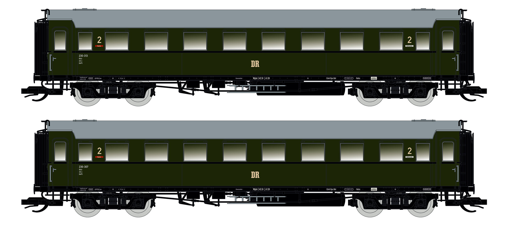 87183 H0 2er Set Personenwagen C4Ü Sa 07 mit Beleuchtung, DR Ep.III
