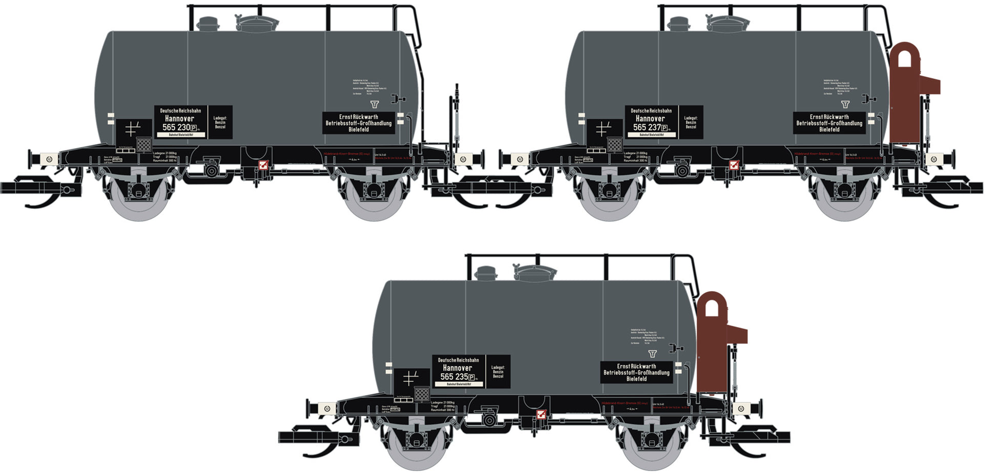 120114-2 - 3er Set Kesselwagen 'Deutz' mit Bremserhaus, DRG Ep.II
